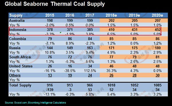 印度尼西亚部分矿场考虑到煤价高企预计增加投资,同时政府计划弥补因货币贬值带来的贸易逆差,以及激进的电厂扩建计划,市场将会进一步增加煤炭供应。而印尼国内的需求并不高,故将会有更多的动力煤走向国际市场。