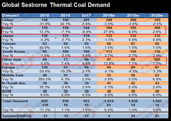 俄罗斯政府的鼓励和基础设施的改善也将会进一步扩大全球海运煤市场份额。       (二)全球海运动力煤需求量