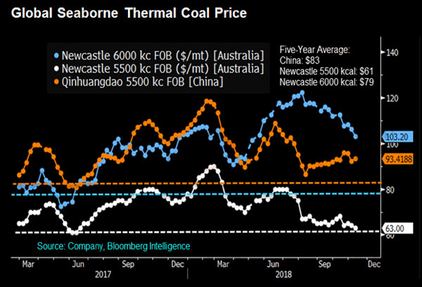 梁穎璋认为,随着全球主要消费国的消费放缓,以及供应国的扩产,全球动力煤市场的供求差距将进一步扩大,预计2019年全球动力煤价格将会面临下降。