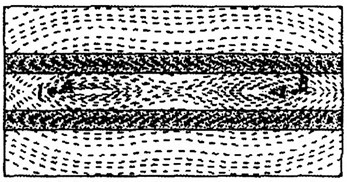 矿井直流电法勘探的特殊性是由电流场的分布特征决定的,因为供电电极布置在巷道边界上,电流场在巷道周围是呈全空间分布状态,因此有两点必须指出:①矿井直流电法勘探测量结果不单是布极一侧岩层电性的反映,而是整个地电断面电性变化的综合反映,即全空间场效应;②巷道空间对电流场的分布产生较大影响。其综合表现如图l所示。这种影响和测点布极因素、装置因素、以及岩层电阻率等多种因素叠加在一起,使得井下全空间电流场的分布更趋复杂化,给正确认识和分析实测资料带来许多困难,因此,有必要找出适合井下电法勘探特点的施工技术和资料处理解释方法。