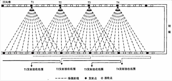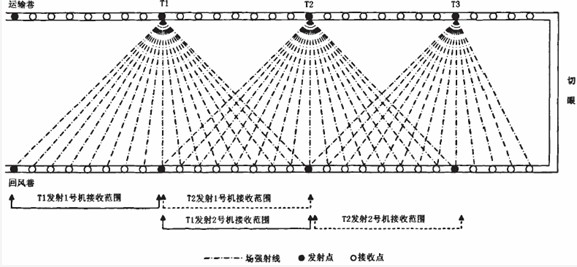 ②对于工作面大于l 500m采用“一发双收”方式。可以大大的缩短探测时间,减轻接收操作员的劳动强度,提高劳动效果。