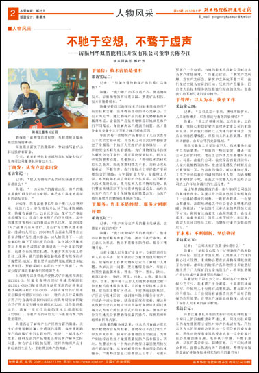 今天,笔者将带您走近福州华虹智能科技开发有限公司董事长陈春江先生。