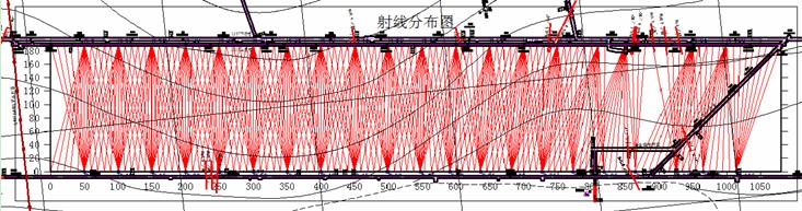 无线电波透视现场数据采集于2012年09月02日完成。在1309工作面上顺槽布置20个发射点,每个发射点接收11个实测场强值;在1309工作面下顺槽布置21个发射点,每个发射点接收11个实测场强值。本次坑透发射点间距为50m,接收点间距10m,探测现场测点分布如3-3图所示。