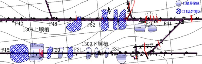 附图1 1309工作面顶板瞬变电磁探测异常区域提取图