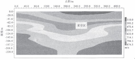 图2 已知煤层采空区天然源面波速度剖面