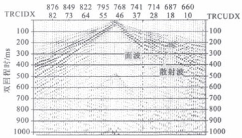 面波作为一种地震波,在纵向、横向速度不均匀介质中也会发生散射。利用面波的这一特点,即面波在遇到地下介质不均匀体(如煤层采空区引起定的不均匀区)会产生反射、透射、散射及中断等,可以直接通过原始的面波记录或共偏移距地震剖面来探测异常体(采空区)。这时,面波是一种有效波,而不再是所谓的“噪声”、“干扰波”了。