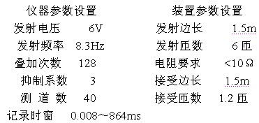 数据采集采用本安型矿用瞬变电磁仪,重叠的工作装置。仪器及装置设置参数如表1。