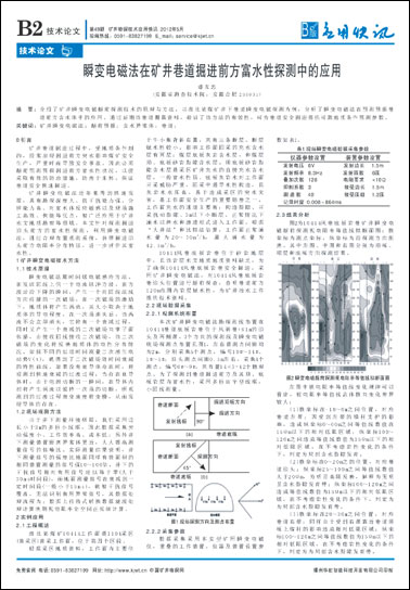 ·瞬变电磁法在矿井巷道掘进前方富水性探测…