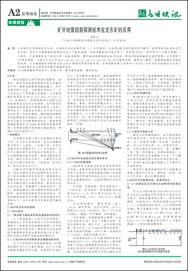 巷道在掘进过程中所遇到的断层、陷落柱、煤岩体结构破碎带等不良矿井地质条件时,都将直接影响到掘进施工,同时也易导致矿井水、瓦斯等灾害的发生,给矿井安全生产带来极大的威胁。矿井震波超前探测技术(Mine Seismic Prediction。简称MSP)。是根据巷道空间特点及高倾角界面波场动力学规律,采用巷道多次覆盖观测系统进行数据采集的一项井下勘探技术,该数据在处理过程中综合运用波场分离、反射波提取、叠前偏移成像等多种地震数据处理算法。MSP技术是一种多波多分量全空间地震勘探技术,能有效探测掘进巷道前方120m范围内断层等地质异常。其探测成果可有效减少掘进事故,保障矿井安全高效生产。