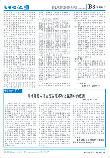 利用井下巷道及钻孔条件建立网络并行电法动态监测系统来实测顶板覆岩破坏导水裂隙带高度技术,对于矿井水害防治、改进支护技术、合理确定开采边界、合理确定其开采上限等具有重要意义。该方法具有实时性、连续性、多信息、低费用等特点;不但是提高矿井安全生产的问题,更是提高开采上限、扩大矿井储量,延长服务年限,提高经济效益的有效途型。