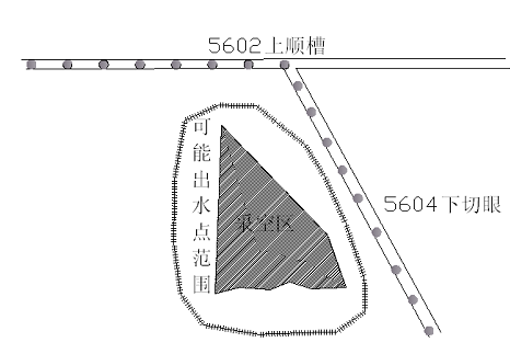 5604面自2010年12月25日开始回采,2011年1月5日推采32m后,老空区顶板全部冒落。1月21日,工作面推采75m,老空区顶板局部悬空,对应底板不同程度鼓起,早8时,老空区出水,流向采煤面前及巷道超前段,初始水量22.5m3/h,连续观测48小时,水量稳定;水质化验与底板十四灰水质相符。21日上午,集团公司领导来矿到井下5604面现场观察,综合分析后确定为底板下伏十四灰承压含水层出水,请福州华虹智能科技开发有限公司技术人员来矿,对5604工作面老空区进行瞬变电磁法探测,详细查找出水点具体位置,进一步确定出水水源。