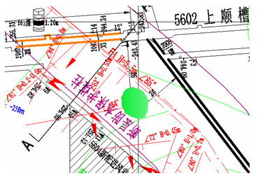 将上述两种物理勘探方法得出的分析结果综合成最终成果,转换成将上述两种物理勘探方法得出的分析结果综合成最终成果,转换成AutoCAD版平面图,并填绘在采掘工程平面图上(如图5所示),指导生产。