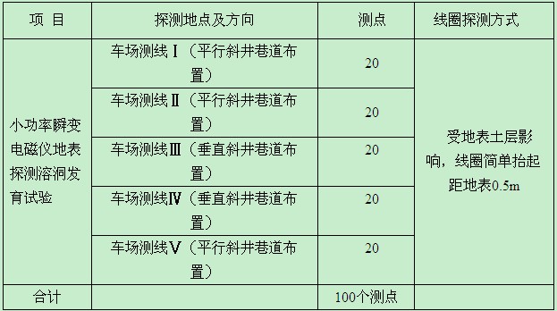 摘要:瞬变电磁法具有对地下水反应敏感,分辨率高的特点。为此使用福州华虹公司研发生产的YCS40(A)矿用瞬变探测仪,此仪器属于小功率瞬变电磁仪,采用共中心分离回线装置线圈,对老鹰山煤矿新建斜井附近地表灰岩中溶洞发育情况进行了探查,指出车场及新建斜井附近以下至100米高度的范围内,地表灰岩中溶洞发育的概况及溶洞富水性分析,为新建斜井掘进提供了可靠的技术支持。经斜井疏放水和掘进验证资料表明,小功率瞬变电磁仪在地表浅层探测中具有较高的分辨率和准确性。关键词:瞬变电磁法,小功率瞬变电磁仪,灰岩溶洞发育,富水性探测