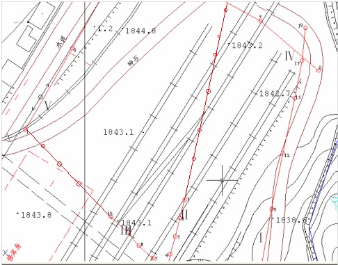 本次探测所采用福州华虹智能科技开发有限公司研发的YCS40(A)瞬变电磁系统。探测采用共中心分离回线装置,采用这种装置可以减少线圈之间的互感影响[3]。发射匝数9,接收匝数18,发射线圈边长1.5m,接受线圈边长2.5m,在车场采用三横两纵布置测线(红色线条为布置测线):