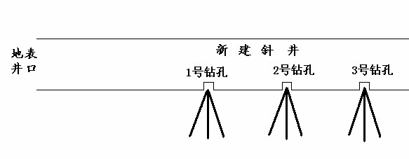 由于测线I、II、V布置平行于巷道开拓方向,因此在巷道开拓至距地表30m左右时候需要设计钻孔进行探放水,由于溶洞的范围均来自巷道右帮,因此钻场设计在巷道右帮,在圈定的相对富水异常区进行打钻放水,先期在在距地表30m、40m、50m相对富水区各施工钻孔3个,观测钻孔放水情况。钻孔布置如图六所示,共施工钻孔9个,孔深60m,累计进尺540m。经钻探及巷道揭露验证:巷道掘进中,巷道右帮正常涌水量13-25m3/h,最大突水量为40 m3/h。分析圈定富水异常区总放水量为1200 m3。小功率瞬变电磁法在浅表层探测溶洞发育及富水性时具有相当的准确性,同时为煤矿的安全生产提供一定的技术支持。