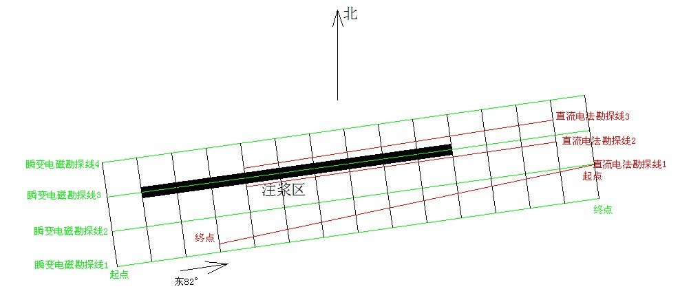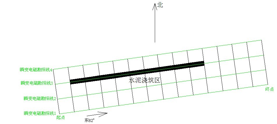 图2-1 九龙山煤矿杜存河段岩溶塌陷区瞬变电磁探测布置示意图