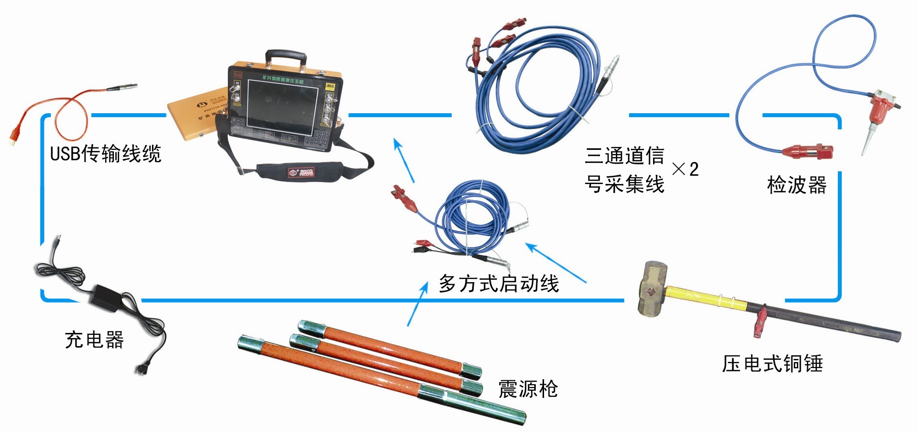 2、用锤击作震源,在松软地方,可在上面垫一个锤垫,锤击点和检波器最好在同一个介质中,尽量使锤击点和检波器在同一水平线上。加大锤击力度,增加锤的重量,能增加探测距离。