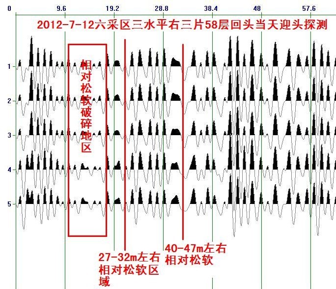 (1)案例一:六采区三水平右三片58层回头探测结果分析