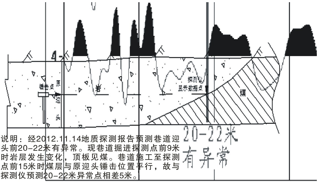 因新兴煤矿针对迎头前方含煤地层或是构造探测,针对巷道实际情况及煤层、岩层的和井下工作迎头的实际情况,对巷道迎头进行了双检波器单点探测,根据地震波反射技术法对迎头前方的构造发育情况和含煤情况进行了可行性评价。