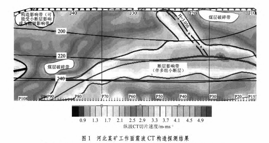 关于地质异常的地震勘探方法技术远远不止上述几种,除上述外,用于井下的还有瑞利波探测技术、震波超前探测技术等,但这些技术在解决矿井工作面地质异常的精细探查方面优势不明显,有待进行深入的研究和改进。纵观矿井勘探技术的发展,地震勘探在矿井工作面地质异常的精细探测方面发挥着无可替代的优势,对于解决工作面构造,尤其是断层构造有着良好的效果。通过三维地震可圈出大体的构造分布区域,通过槽波地震通常就能查明工作面内落差大于1/2煤厚的断层。利用工作面震波CT技术能查明工作面巷道已揭露的落差在lm以上的断层在工作面的延展情况,并且可以查明工作面内诸如陷落柱、岩浆侵入区、薄煤区等隐伏构造。同时,利用CT属性参数也可对工作面内瓦斯富集情况进行评价。