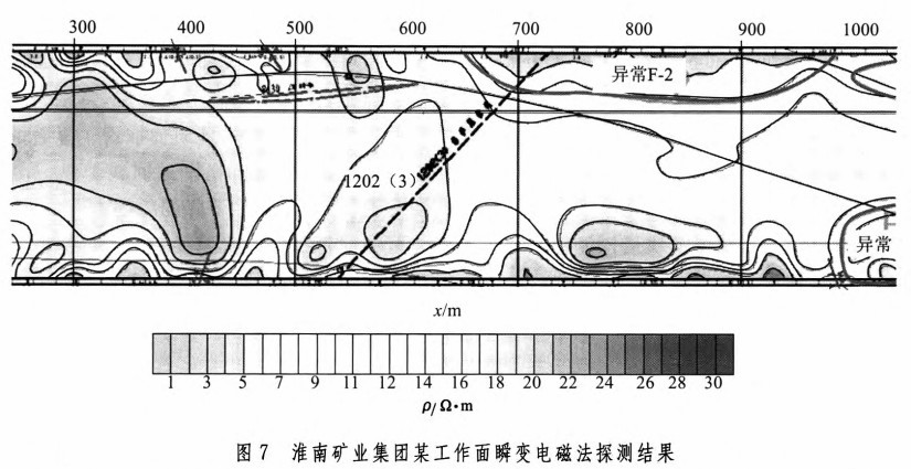 在资料解释时,探测深度通常由发射频率来决定,不同的发射频率对应不同的探测深度,此深度往往也与工作面宽度有关。