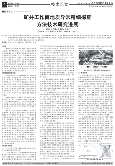 摘要:煤层工作面内部结构及构造条件对生产影响巨大,利用地球物理手段对工作面内地质异常精细探查对煤矿安全生产具有重要意义。论文结合国内外矿井工作面精细探查方法技术的应用与研究现状,详细介绍了地震类、电法类、电磁法类等精细探查方法技术的应用发展,指出了各种方法的不足与改进思路,提出了矿井工作面精细探查方法技术未来的发展方向。关键词:矿井工作面;地质异常;精细探查;进展