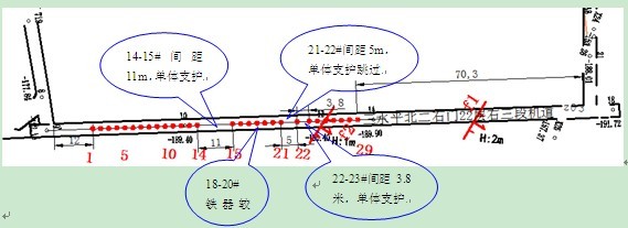 益新煤矿三水平北二石门22层右三段机道U型钢支护,且在探测过程中已经对现场生产供电进行断电,底板多处存在铁器干扰、底板积水、顶板淋水等情况,并在某些位置采用单体支护,无法施工,对本次探测数据采集影响较大。