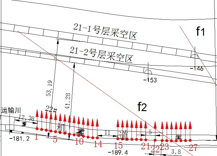 三水平北二石门22号层右三段回风道标高-124.5米。上方煤层21-1、21-2在2010年已采完,正上方有东源煤矿开采13号层最低标高+50米、振富煤矿开采11-3层最低标高+20米、岭东煤矿开采7号层最低标高+37米、弘泰煤矿开采11-1层,最低标高-13米,合发煤矿开采21-2层最低标高为-90。要求采区开采时加强警戒工作。旧区最低点标高为-167.3m,估算积水量为3500m³。三水平北二石门22号层开采前进行了打钻放水工作,并已完成,但局部地区钻孔仍存在轻微出水现象。