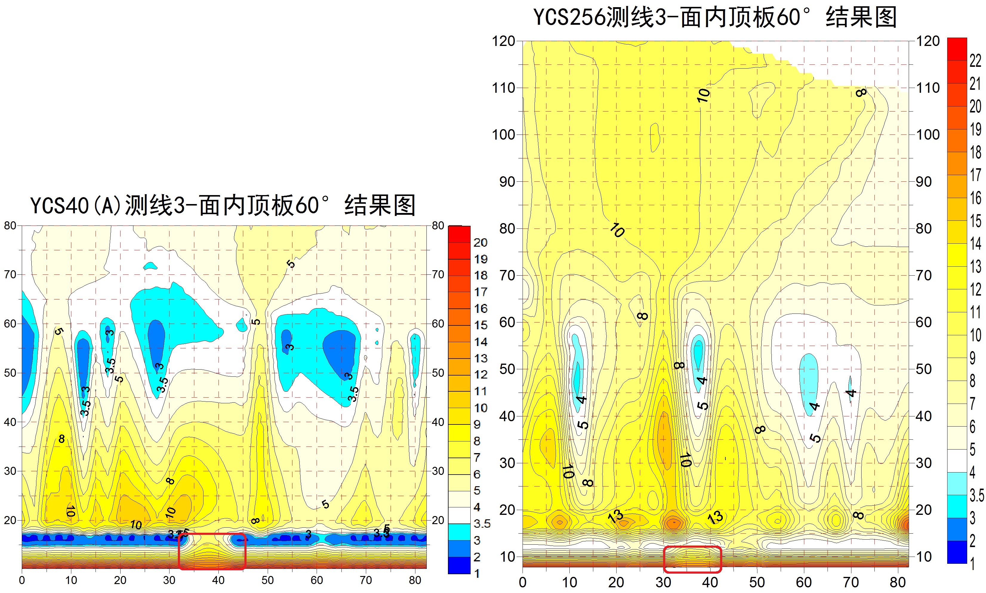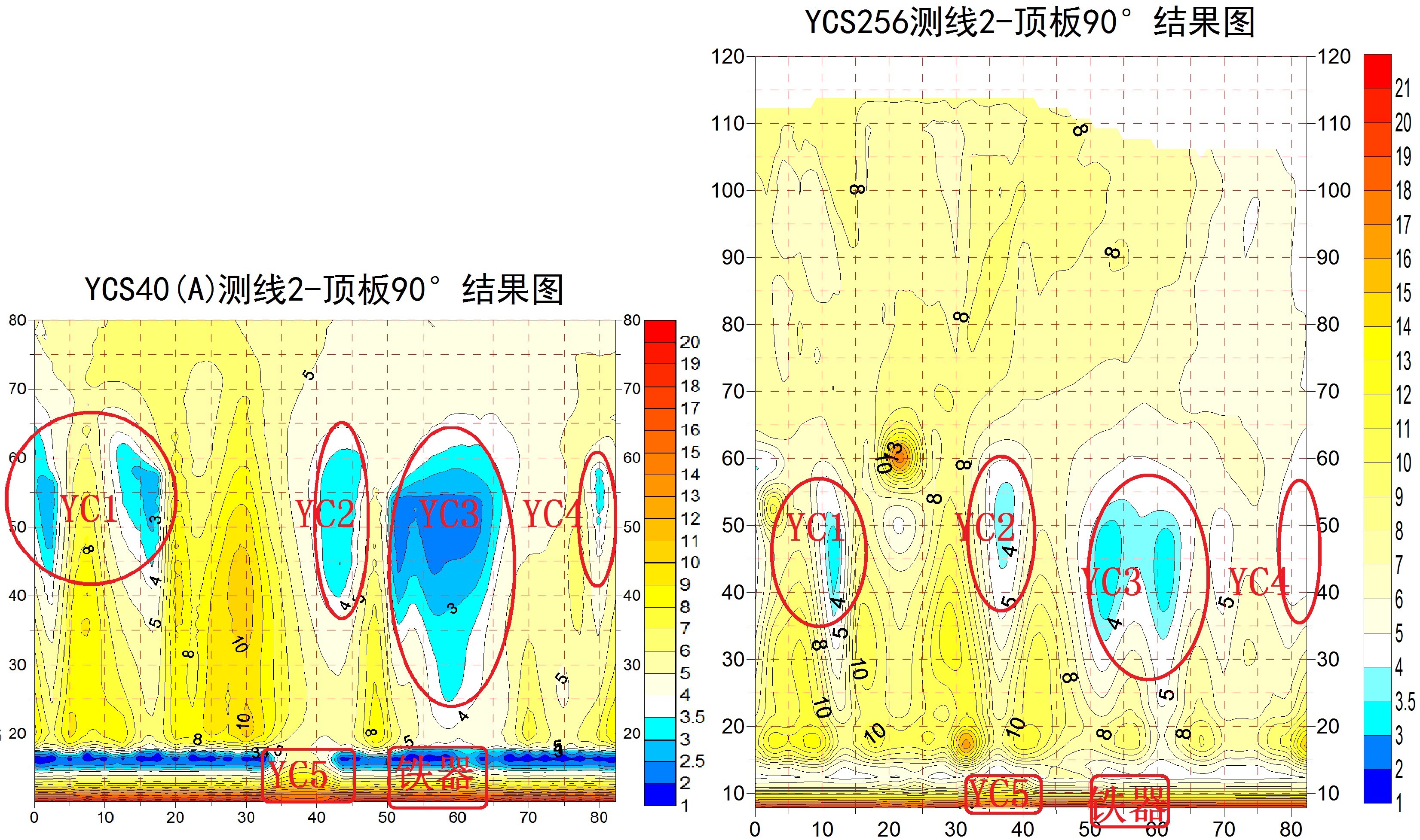 3) YCS256的盲区明显小于YCS40(A)的。本次探测结果显示,在同样的现场环境下YCS256盲区在11米左右,而YCS40(A)盲区在18米左右;