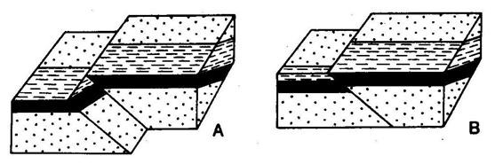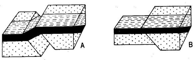 走向断层错开岩层后的效应主要表现在造成两盘断层的缺失和重复。缺失是指一套顺序排列的地层中的一层或数层在夷平地面上断失的现象;重复是指一套顺序排列的地层中的一层或数层在夷平地面上重复出现的现象。