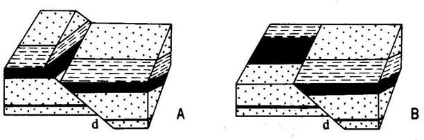 平面上仍表现为平错;在剖面上顺岩层倾向滑动的断盘表现为上升盘——究竟是“正断层”或“逆断层”视断层倾向而定。如图三所示。