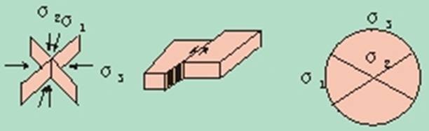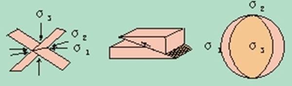 根据自然界绝大多数断层存在相互滑动这一特点,断层面应属剪切面,它是岩石(块)受力超过其抗剪强度,沿最大剪应力作用面产生破裂。