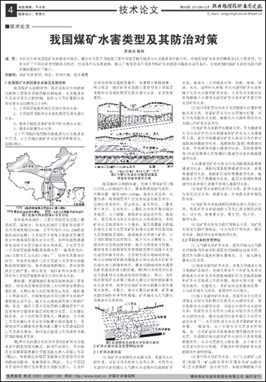 摘要:分析近年来我国煤矿水害的基本特点,通过对全国不同地域主要开采煤层赋存地质与水文地质条件的分析,将我国煤矿水害类型概括为4大主要类型。初步分析了不同水害类型的基本特点、形成条件与发展趋势,提出了有效防治不同类型煤矿水害的技术路线及适用条件,对目前制约煤矿水害防治技术的关键问题进行了探讨。