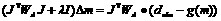 根据理论计算值与实测值之间的比较、拟合,如果两者之间的误差未达到给定精度要求时,可不断的重复的修正模型参数。在每一次迭代过程中,模型都需更新矩阵Δm,见式: