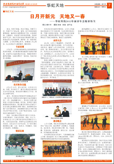 美好的时光总是短暂的,华虹科技2013年新春年会结束了。但愉快的记忆会一直保留在我们的心里。专家培训丰富了我们的知识,技术业务交流交互了彼此的经验,比赛增进了同事之间的感情,表彰大会激励着我们奋发,晚会带给我们全身心的放松和享受。展望2013,华虹人激情满怀,携手并肩,向着更高更远的目标奋发!祝愿华虹科技的明天更加美好!