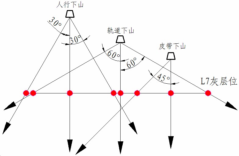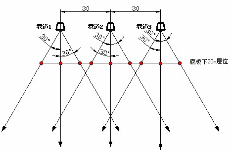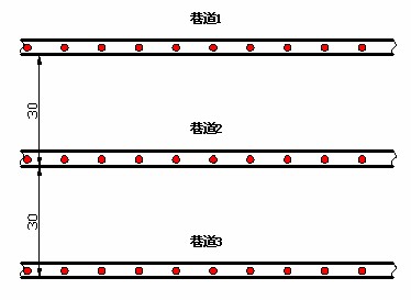 (1) 巷道1、巷道2、巷道3同水平,相邻巷道距离30m,如图一所示;