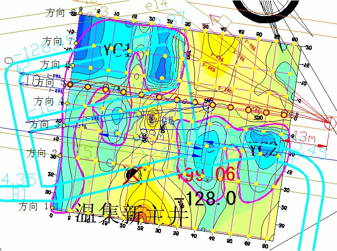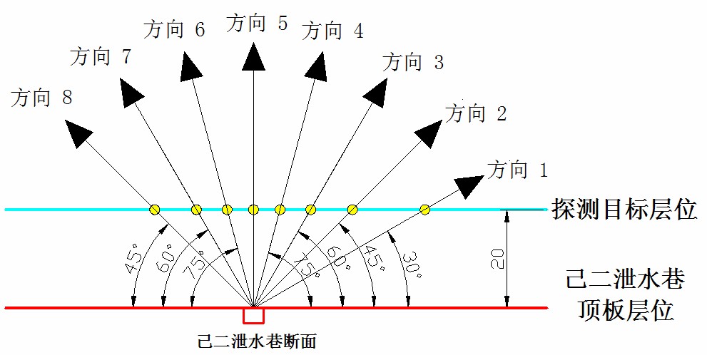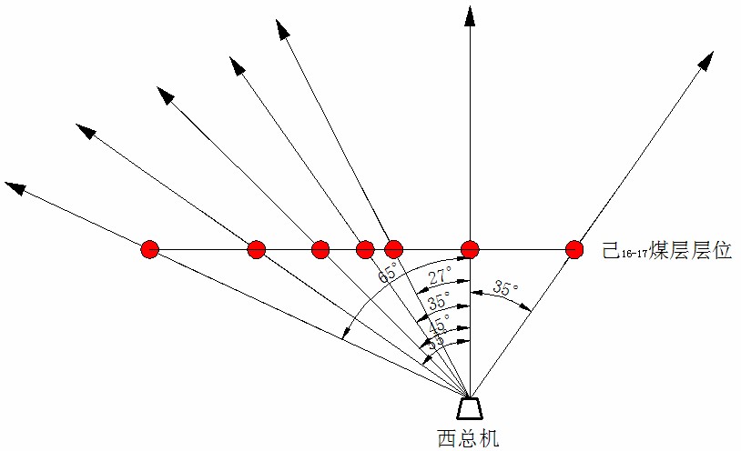 图六 西总机单巷瞬变电磁法测点探测方向图