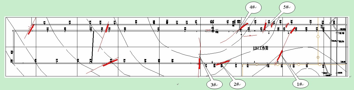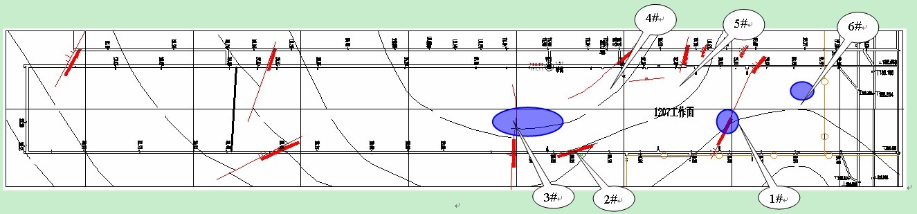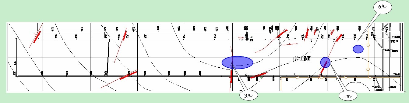 此次探测共测得5个主要构造异常区,基本与回风顺槽、进风顺槽实际揭露断层位置相符。其中1#断层与3#断层是影响1207回采最主要的构造带。已知断层的断距均较大,对无线电波信号吸收较强,在一定程度上影响了相邻位置是否存在断层的判断。对比异常区和已知断层的关系,基本可以排除探测范围内存在断距超过2m的隐伏断层的可能性。