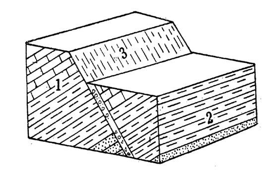 1.下盘;2.上盘;3.断层面