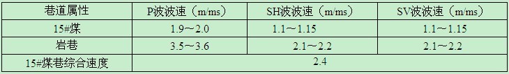 表二 不同岩、煤介质纵波(P波)和横波(S波)速度表(初至拾取)