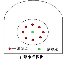 为探测1020工作面机巷及回风巷迎头前方的地质构造情况,本次震波探测采用反射共偏移及单点探测两种方法进行,通过两种探测方法相结合的方式探查迎头前方的地质构造情况。