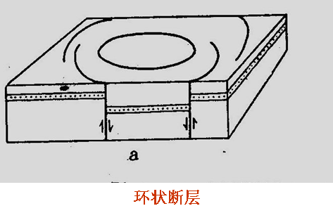 环装构造是由若干条弧形、半环状正断层围绕一个中心成同心圆状排列之组合。