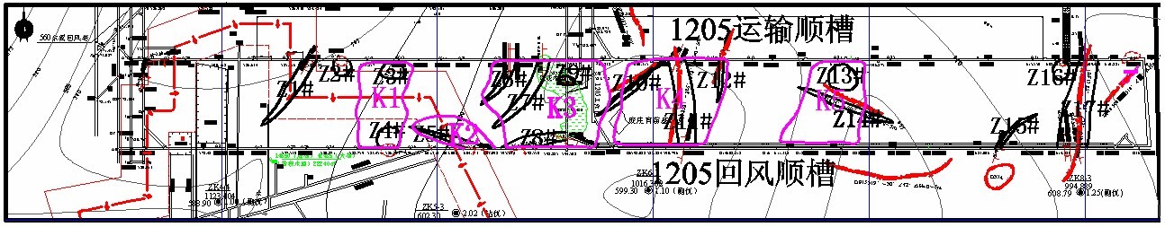 如图3所示,1205工作面在回采过程中实际揭露情况如下: