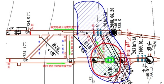 综合皮带巷、总回风巷、第二联络巷及第三联络巷的瞬变电磁、地震波及直流电法的探测结果,同时结合现场的地质情况推断出该冒落区的影响范围,如下图5-1所示。