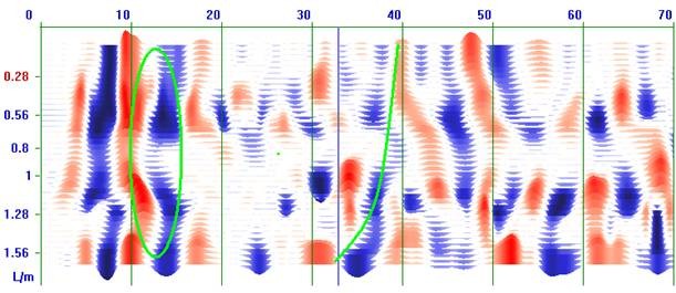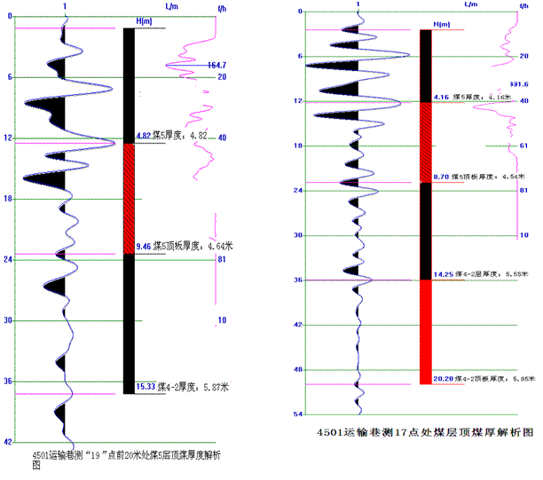 结合本矿地质资料综合分析研究,在31101工作面上顺槽S010测点前27m处布置测点,探测深度为100m,断面图上在横向40m和纵向35m处,存在低阻异常反映,确定为测点在采集数据时,受现场影响所致,经矿方掘进验证,实际揭露结果与物探探测结果一致。