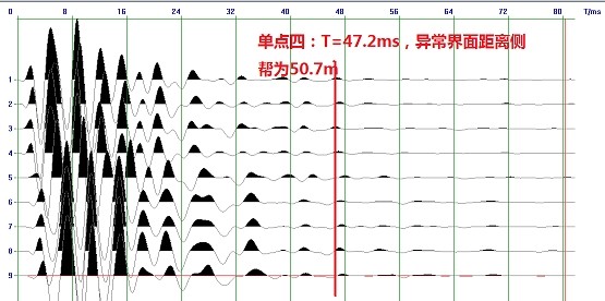 3、在巷帮破碎的情况下不能盲目的使用震波耦合器,在经过对比后本次探测没有采用震波耦合器。