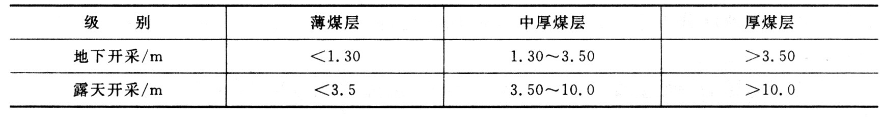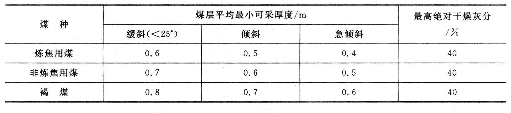 从我国煤炭资源的赋存情况、煤的用途和目前开采技术条件等因素考虑,国家规定了煤层最低可采厚度,见表一。