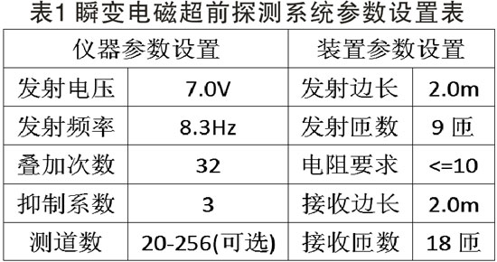 本次探测所用设备为YCS256矿用本安型瞬变电磁仪,仪器的主要性能参数如下表。
