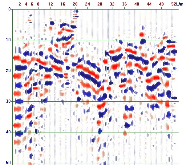 为了识别有效反射波,必须选择最佳地段接收的“最佳窗口技术”。通常现场噪声调查时检波器接收到的弹性波有来自震源激发所产生的反射波、折射波、面波、空气声波、多次反射波等,也有测试空间的常时微动和测线附件的人为干扰等,因此必须从调查记录中考虑避开各种干扰波,突出有效反射波,准确有效地确定最佳偏移距,保证测试时反射波同相轴的清晰易辨,同时还要考虑激发能量的有效性。而移动步距决定横向分辨率,因此不宜太大。