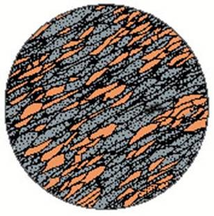原岩的组构(指结构和构造)被强烈改造,矿物和矿物集合体的形态或晶格具有显著的优选方位,如图六所示。